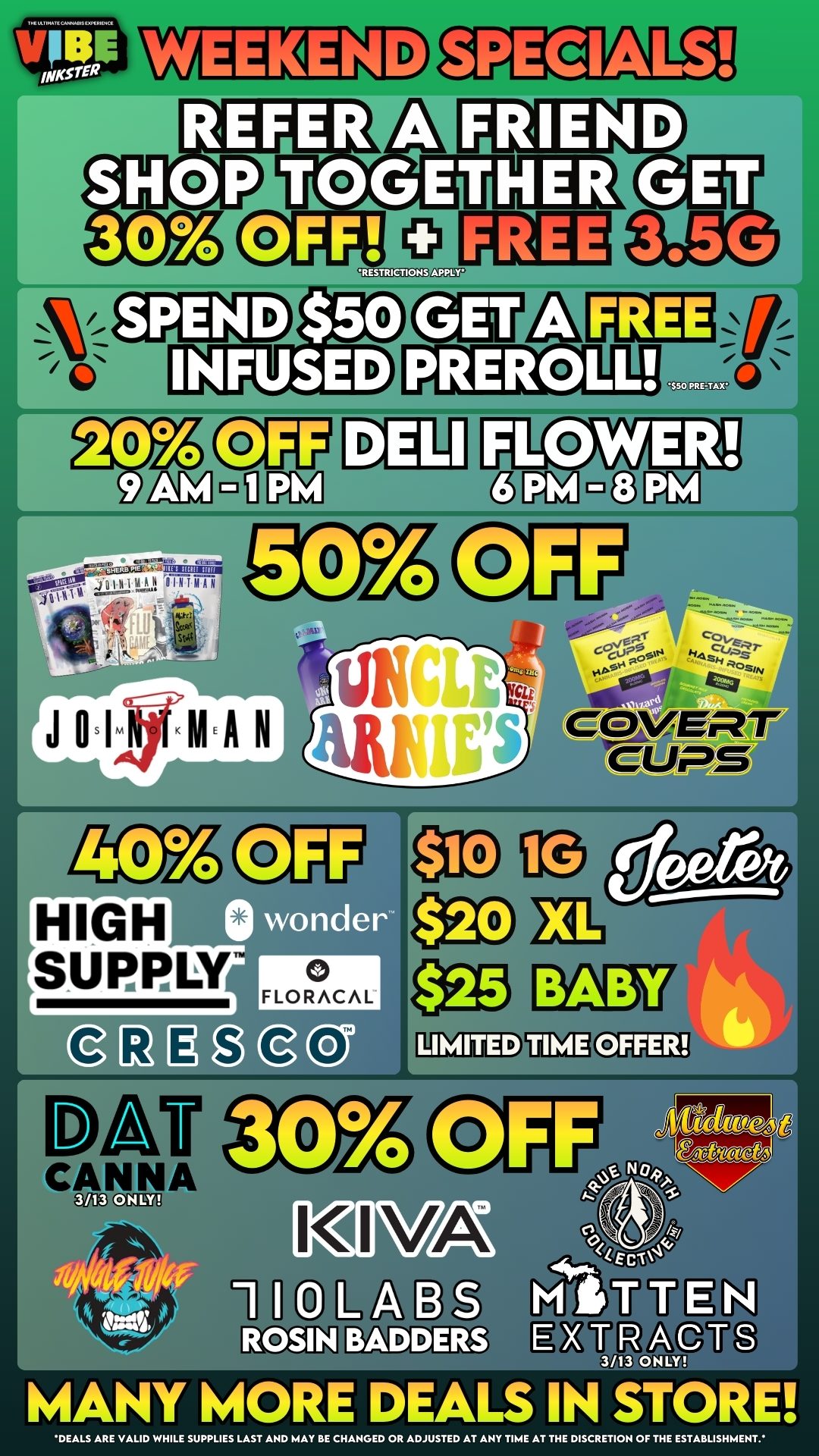 Yes. Vibe Dispensary Inkster offers daily, weekly, and special promotions. Deals vary by day and location.