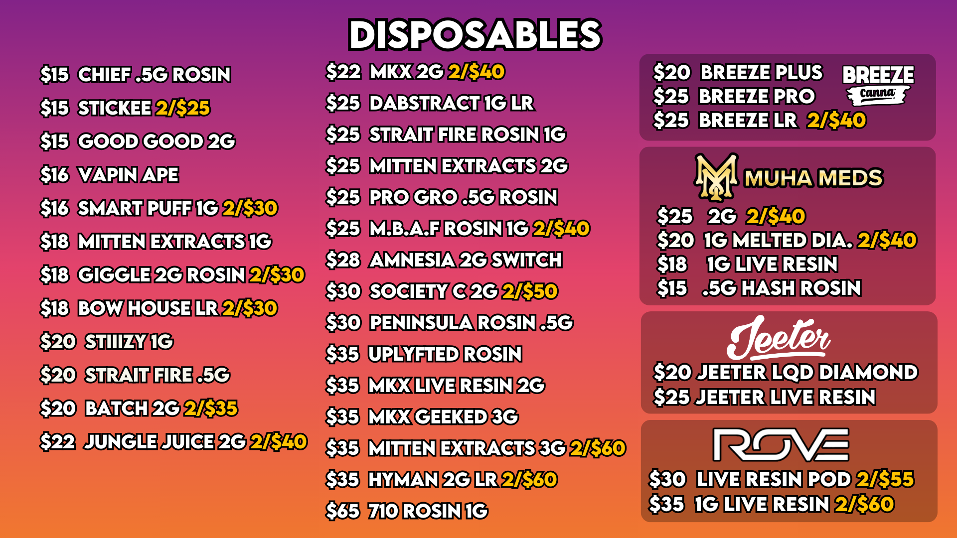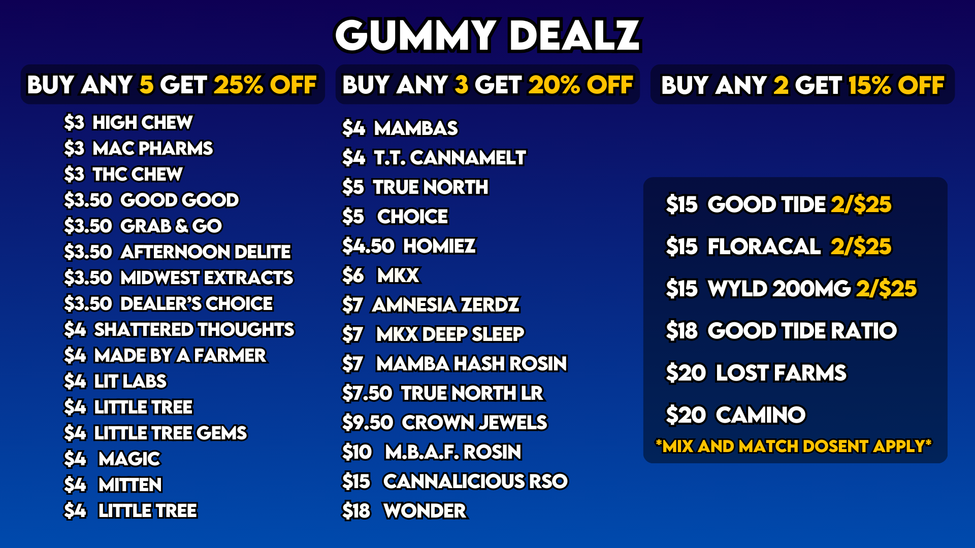 Wide selection of premium flower, vapes, edibles, and concentrates.